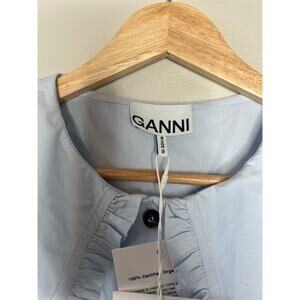 NWT Ganni Poplin Shirt Cotton Oversized Collar Puffed Sleeve Top Heather Size: M