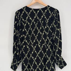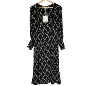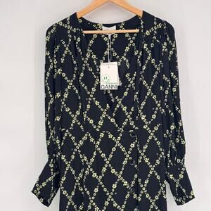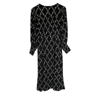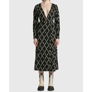 NWT Ganni Printed Crepe Black Floral Long Sleeve Midi Dress Sz 8 Romantic Boho