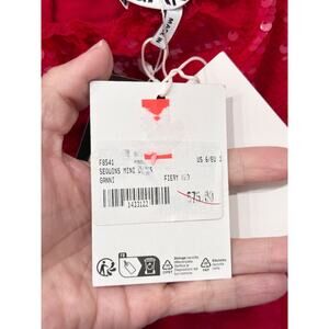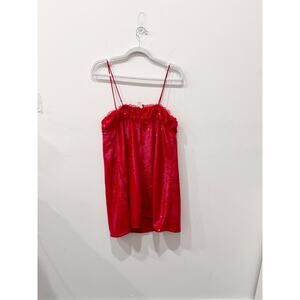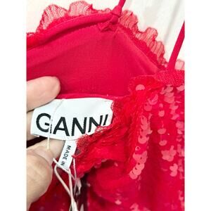 NWT Ganni Ruffle-Trimmed Sleeveless Sequined Crepe Mini Dress Red Womens Size 6