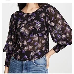 NWT Ganni Top Blouse Printed Floral Georgette Sheer Fairy Boho Black 34 Small