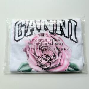 NWT Ganni White Basic Jersey Rose Relaxed Graphic T-shirt Size XS