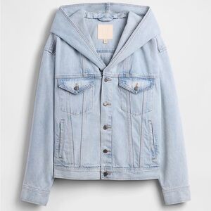 NWT Gap × BÉIS Oversized Denim Jacket. Never worn, size small. Oversized fit hooded denim jacket. Perfect for fall/travel! Completely sold out in store and online
