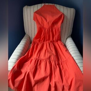 NWT Gap Backless Tie Halter Maxi Dress Tiered Dress Coral Dress Women’s Size 4