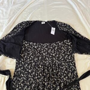 NWT Gap Black Floral Print Wrap Dress Sz M Maternity Nursing Stretchy