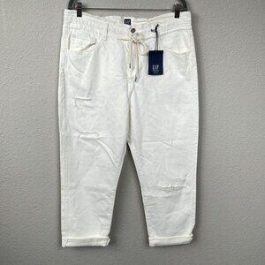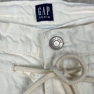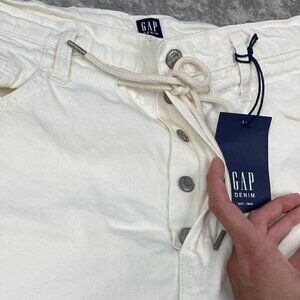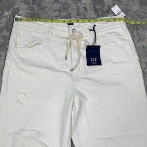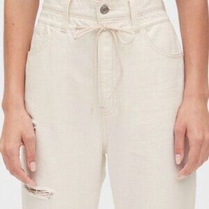 NWT Gap Boyfriend Draw Cord High Rise Distressed Jeans Paperbag Off White Sz 31P