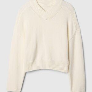 NWT Gap CashSoft Cropped High V-Neck Sweater - Ivory frost beige