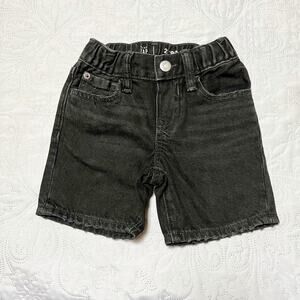 New with tags Baby Gap pull on denim jean shorts. Bermuda length in black with frayed bottoms. Size 2.