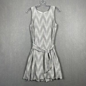 NWT Gap Dress Womens Small White Black Printed Tie Waist Sleeveless, has side Pockets, lined, back zipper closure.