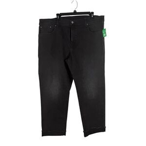 NWT Gap Girlfriend Mid Rise Black Jeans Womens Sz 34/18R Raw Hem Cuffed Bottom
