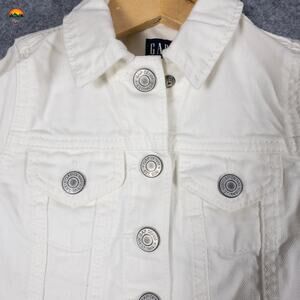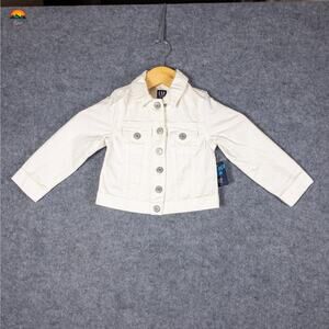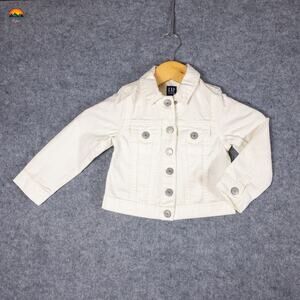 Keywords: Gap jean jacket, girls white denim jacket, size 3 girls outerwear, kids jean coat, toddler layering jacket, long sleeve denim jacket, collared jean jacket, classic kids fashion, casual white jacket, kidcore, preppy kids style, Beachy, coastal, streetwear, denim jacket, white denim, light Academia, Preppy, minimalist, bikercore, country, western, Gap Kids, SKU: 1322
