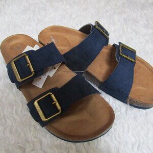 NWT Gap Kids Navy Blue Double Buckle Cork Sandals Shoes slides slippers Sz 3-4