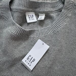 The NWT Gap Kids Solid Slouchy Heather Grey Sparkle Crewneck Sweater in size XL is a stylish and classic pullover sweater designed for girls. Made from a comfortable cotton blend fabric with a knit texture, this sweater features a solid gray color with a crew neck and long sleeves. The sweater carries a preppy and metal theme, making it a versatile and trendy piece for any young girl's wardrobe.