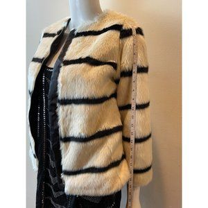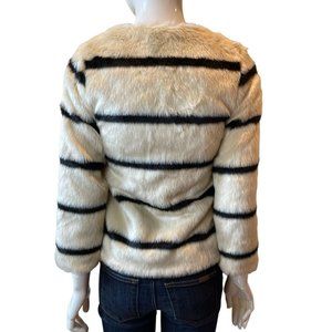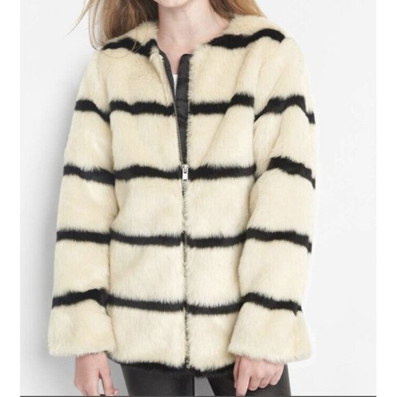 NWT Gap Kids Striped Faux Fur Coat Full Zip Up Long Sleeve Ivory Black SZ Medium