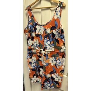NWT Gap Linen Blend Hawaiian Print Sundress Orange Navy Size XL