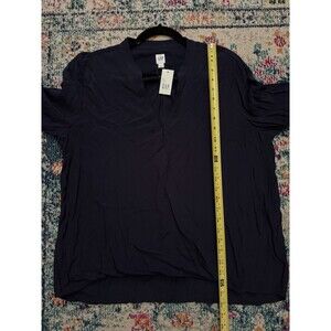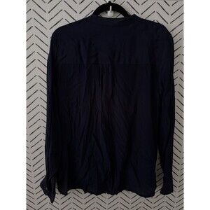 The NWT Gap Long Sleeve Folded Wrap Navy Uniform Blouse Top in size Large is a classic and versatile piece suitable for both casual and business occasions. Featuring a solid blue color, long sleeves, and a V-neckline with button closure, this blouse is made from soft rayon material and offers a comfortable regular fit. With its basic style and accents of buttons, this blouse from Gap is a timeless wardrobe staple for women looking for a stylish and elegant top.