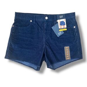 NWT Gap Navy Blue High Rise Corduroy Shorts Women's Size 12 Stretch Raw Hem