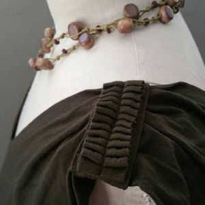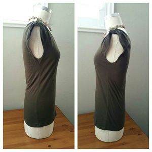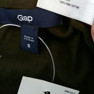 NWT Gap Olive Green Tee with V-neckline in front and back, and unique Military Shoulder Pleating Detail in excellent condition, no flaws. Great neutral that can easily be dressed up or down. Measurements are: Length is 26", Bust width is 17", waist width is 15", waist width at the bottom is 17".