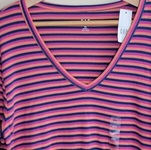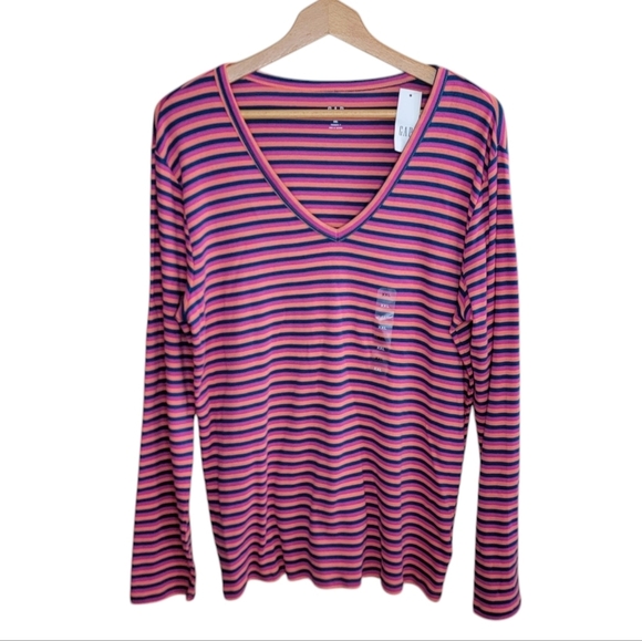 NWT Gap | Pink Navy Orange Striped Long Sleeve V-neck Favorite Tee Size XXL