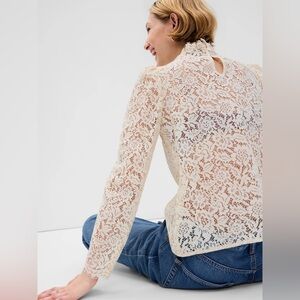 New w/ Tags - Gap Puff Sleeve Ruffle Neck Lace Top in Chino Beige - Size L