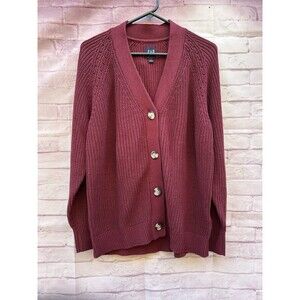 NWT Gap Shaker Stitch Chunky Knit Size L Boyfriend Grandpa Cardigan Burgundy