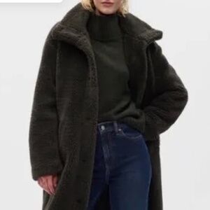 Long Sherpa coat, Gap, mistletoe green, oversized Teddy coat, XS, never worn with tag. Hard to find style.