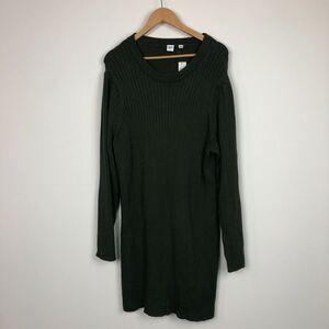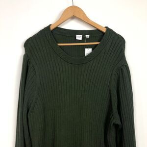 NWT Gap Women's Ribbed Puff Sleeve Sweater Mini Dress Long Sleeve Green Size XXL