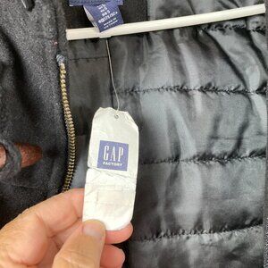 NWT Gap Womens Sz S Wool Duffle Coat W/ Hood Toggle Buttons Black Pea Coat
