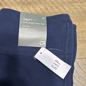 New with tags, smoke free. Gap fit full length flare pants size small. Mid rise. Dry wicking. Navy blue. Measurements are in the photos.