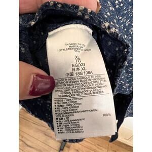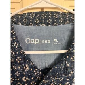 New with tags mens Gap shirt. Denim material with an off white design. Snaps down the front. Measures 24” from armpit to armpit and 30” long.