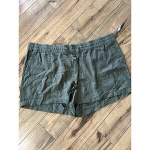 New with tags Gap size XXL dark green linen blend shorts. Waist is 21” across and has elastic and a drawstring. Inseam is 3”.