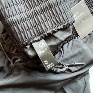 Soft stretch woven lightweight pants. Elasticized waist with drawcords. Front slant pockets. These pants are made with 88% recycled polyester.