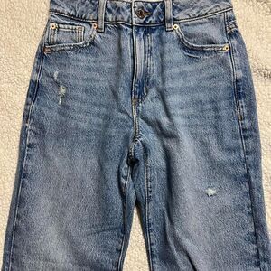They have perfectly placed rips at the knees, minor distressing details, and a trendy raw, frayed hem. A must-have for any 90s or Y2K inspired wardrobe!