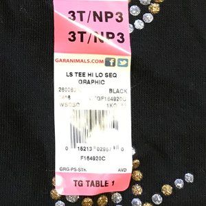 NWT Garanimals black girls long sleeved cotton tee size 3T.