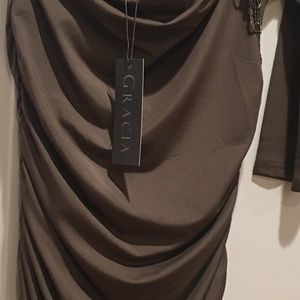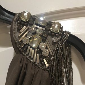 Beautiful runched siding brown jersey dress with gorgeous beading