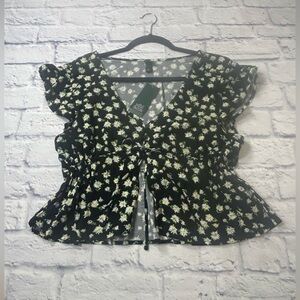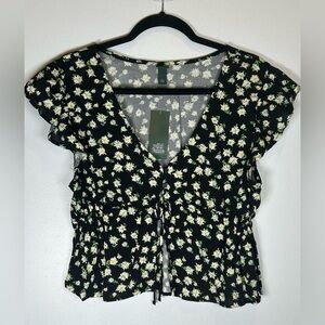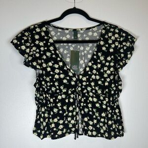 NWT Garden Girl. Cottagecore. Romantic. Wild Fable Black Floral Cropped Blouse