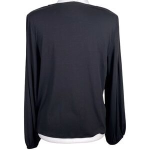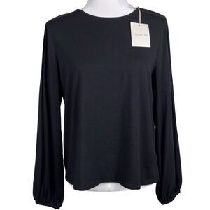 NWT Garnet Hill Knit Top Size Medium Black Pintuck Puff Long Sleeve Crew Neck