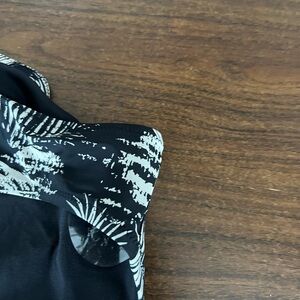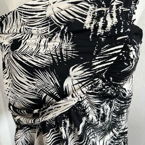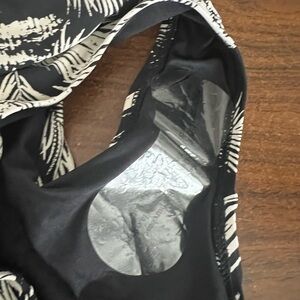 Stylish one-shoulder swimsuit in black and white. Features a unique pattern for a chic look.
