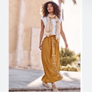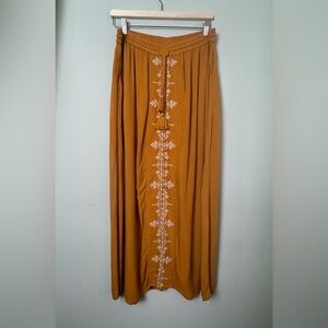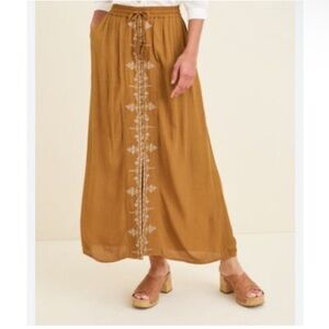 NWT Garnet Hill Solaris Button Front Maxi Skirt Embroidered Aztec Gold Size S
