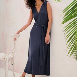 NWT Garnet Hill Tie Waist Knit Maxi Dress Brown Tencel Lyocell Size XL