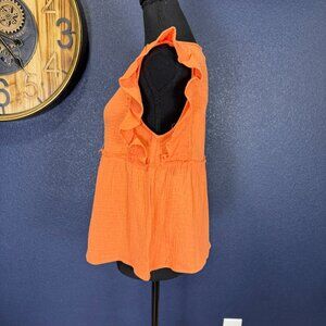 Ruffle Sleeve Babydoll Cotton Gauze Top