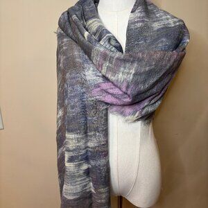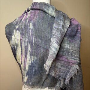 NWT Gaynor Gnomo Printed Wool Scarf, 95cm x 200cm, Grey, Dry clean