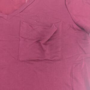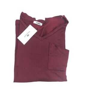 NWT GeeGee Rayon Blend Maroon T-Shirt Womens S Pocket V-Neck