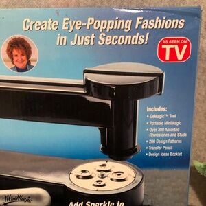 Turn simple garments and accessories into works of art! The GemMagic kit allows you to do just that. The kit contains an array of colorful glass rhinestones, as well as the tools needed to apply the rhinestones to fabric. There is also a booklet that showcases design ideas using the rhinestones. Get ready to express your creativity with this fun kit. Then, get set to receive compliments on your snazzy creations. This GemMagic kit is brand new and has never been used.
