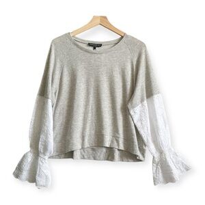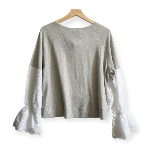 Gray sweatshirt silhouette with white long eyelet sleeves