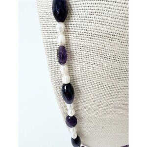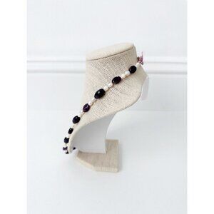 New with tag. Genuine amethyst, carved amethyst and pearls beaded necklace. Colors - purple and white.