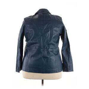 NWT Genuine Leather Blazer Navy Blue Y2K Minimalist 90s Goth Grunge Punk Whimsigoth Off Duty Model Single Breasted