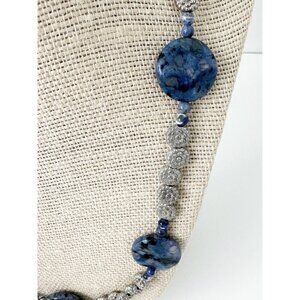 NWT Genuine Sodalite & Metallic Beads Necklace Blue Silver
