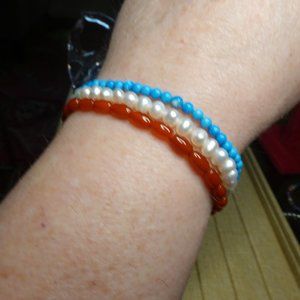 (NWT) Genuine Turquoise Bead (3) Bracelets Stack/Set