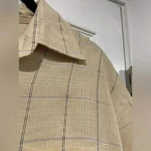 NWT Geoffrey Beene Men’s Beige Plaid Short Sleeve Collared Button Down Size 16