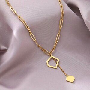 NWT Geometric Pendant Lariat Y Necklace 14K Gold Plated Minimalist Choker 16”